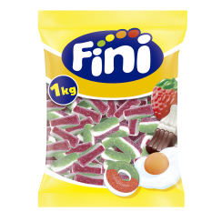 Ingredientes: azúcar | jarabe de glucosa | agua | gelificante: gelatina | dextrosa | acidulante E330 | gelificante: pectina | acidulante E270 | corrector de acides E325 | aromas | colorantes E122, E124, E129, E153, E162.