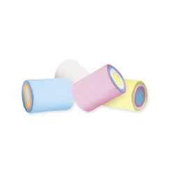 Esponjosas nubes de colores blanco, azul, rosa y amarillo.