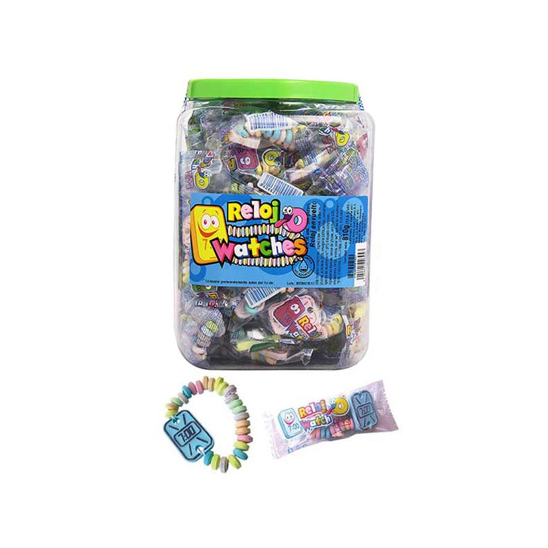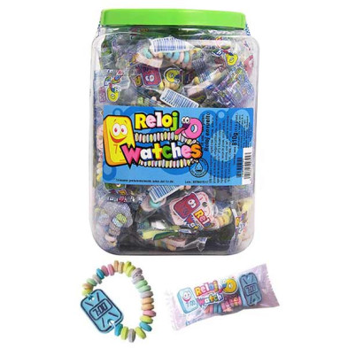 Este estuche contiene 70 relojes hechos de caramelos. envueltos individualmente. Son sin duda los relojes favoritos de los más pequeños.