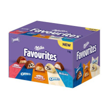Los bombones más especiales de Milka. Un increíble surtido en el que encontrarás 5 sabores irresistibles: tarta de queso, oreo de chocolate blanco y negro, nuez caramelo salado y Milkinis.