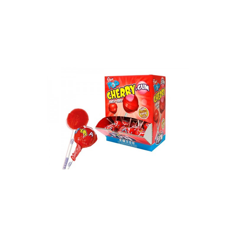 Caramelos con palo Finipop Cherry relleno de chicle 100uds