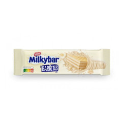 Crujientes y ligeras, las Barritas Milkybar combinan barquillo relleno y crema de vainilla, cubiertas de chocolate blanco. Cada caja contiene 30 unidades envueltas individualmente, con un peso de 33 gramos cada una. Perfectas para un capricho dulce en cualquier momento.