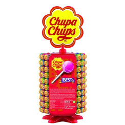 Los tradicionales Chupa Chups con su diversos sabores en un expositor de unas 200 unidades.