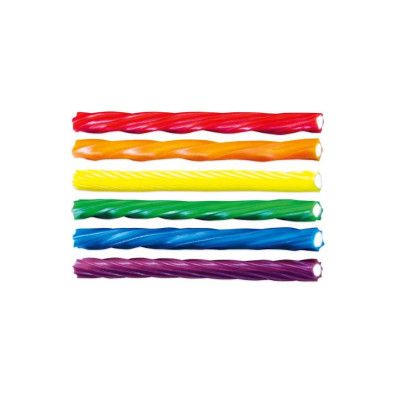 Golosina jumbo de gran longitud, con mezcla de colores llamativos.