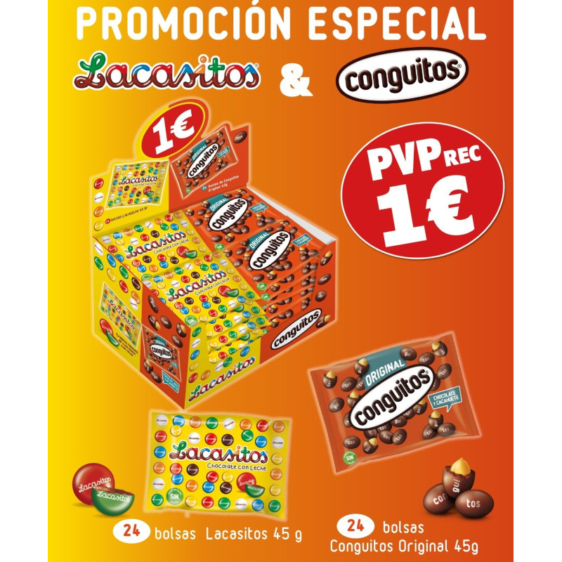 Ex. Conguitos + Lacasitos 45gr 48ud 1€